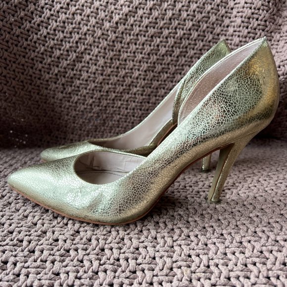 Anyway these are very similar to the Jessica Simpson Prizma D'Orsay Pump; about 4" heel, pointed toe, and real leather.