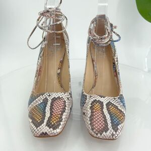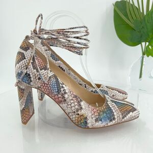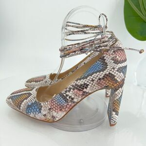 Vince Camuto Damell Ankle Wrap Pump Women's Size 7.5 Snake Print Leather Elegant