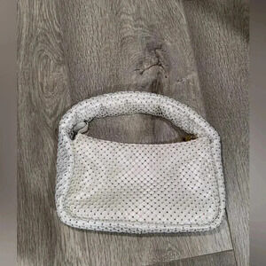 Vince Camuto Damsa Crystal Mesh Mini Shoulder Bag. Damsa Shoulder purse is white with striking glass bead overlay covering the purse with a zipper for closure. There is an inside pocket. This is a very nice mini purse for a night out, very unique purse.