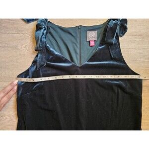 Vince Camuto Dark Green Sleeveless Velvet Mini Dress W/Bows In Shoulders Size 12