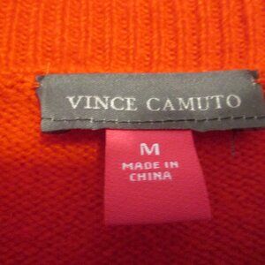 Vince Camuto dark orange-red pullover sweater that I purchased new. Only wore 1-2 times. Little brighter color than I like. Sweater is in excellent condition. Relaxed fit. 73% acrylic, 24% polyester, 3% spandex.Measurements are pit to pit 26", length 23.5:, sleeve 20". Very soft feel. Great for the upcoming holiday season.