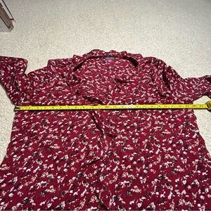 Vince Camuto Dark Red Floral Long Sleeve Blouse Size XL Ruffle V-Neck Collar