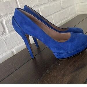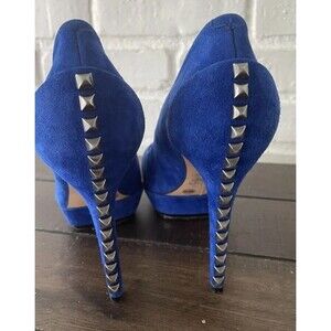 Vince Camuto Deba Studs Platform Pumps hi Heels Leather Suede Blue Sz 6 Stiletto
