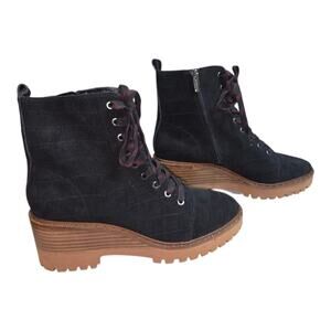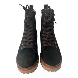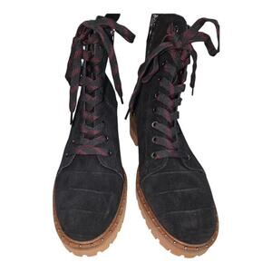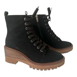 Vince Camuto Debsen Black Suede Croc Lug Sole Platform Combat Boot Lace Up 8.5
