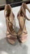 Wow at weddings and other glam events in an open-toe sandal featuring crisscrossed vamp straps, a cushioned footbed and a towering stiletto heel.