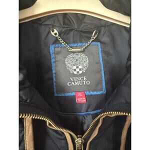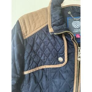 Vince Camuto Diamond Quilted Equestrian Jacket Navy and Camel size XL EUC