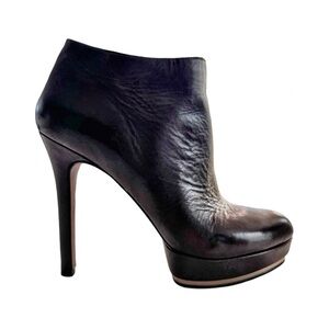 Vince Camuto ‘Dira’ Leather Stiletto Ankle Booties w/ Gold Trim & Gold Zip. 9M