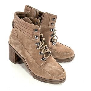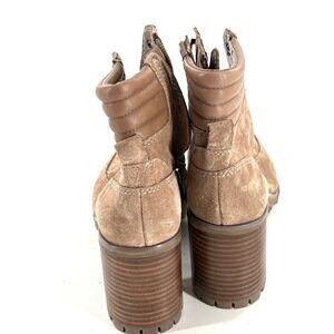 Vince Camuto Donenta Heel Combat Boots 7.5 NWOT Tan Suede Ankle Booties Moto