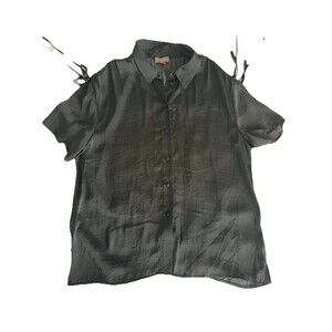 Vince camuto black silky button blouse with drawstring ruched sleeve
