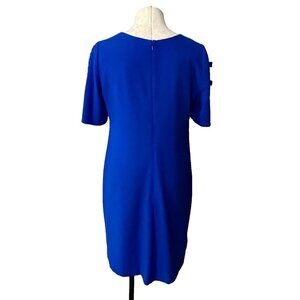 Vince Camuto Dress 10 Cobalt Blue Short Bow Sleeve Stretch Career Church