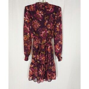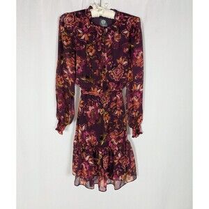 Vince Camuto Dress 2 Women's Purple Floral Chiffon Fit & Flare Tie Belt Buttons