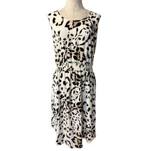 Vince Camuto Dress 2X Ivory Brown Pockets Washable Sleeveless Summer NEW