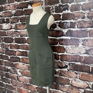 Vince Camuto Dress Olive Green Sleeveless Square Neck Size 8