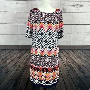 Vince Camuto Womes Dress size 10 Sheath Geometric Multi Color Zip Short Sleeve