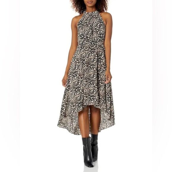 Vince Camuto Dress Women’s 12 Cheetah Print Sleeveless Halter High-Low Midi NWT