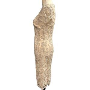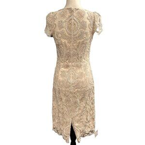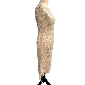 Vince Camuto Dress Womens 4 Beige Lace Textured Midi Victorian Wedding Feminine