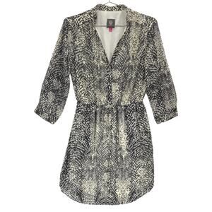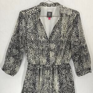 Vince Camuto Dress Womens 4 Gray Geometric Ruched Waist Tie Front Button Lined