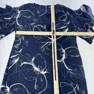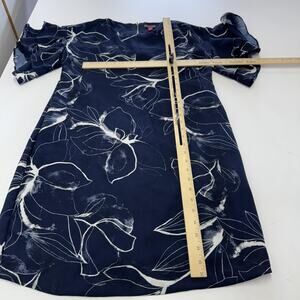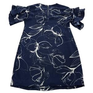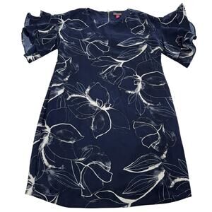 Vince Camuto Dress Womens 6 Navy Blue White Floral Print Short Sleeve Ruffle Back Zip