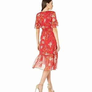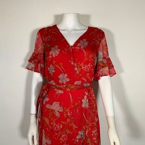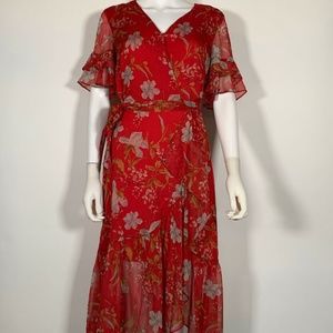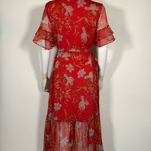 Vince Camuto Dress Wrap Floral Tired Ruffled Red 2