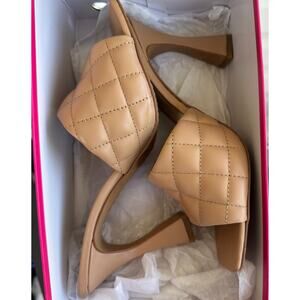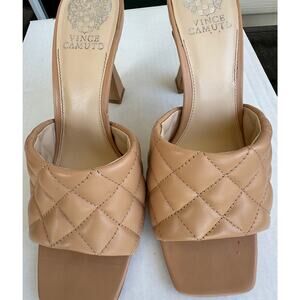 Vince Camuto Dulce de Leche Quilted Leather Mules Heels 9M Neutral Chic Classic