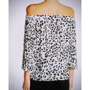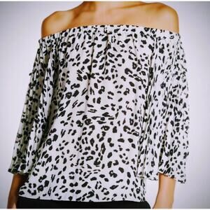 Vince Camuto EUC Animal Snow leopard Whispers Bell Sleeve Blouse Medium black