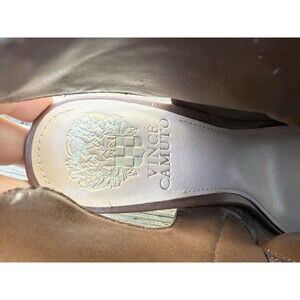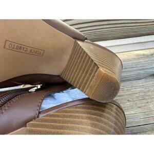 Vince Camuto Eida Leather Tan Studded Peep toe ankle bootie Gold tone studs Zipper on inside Sz 8W See all photos for details