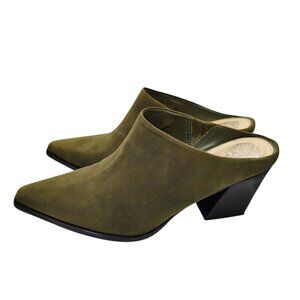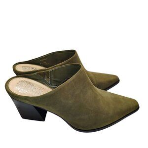Vince Camuto Egwennny Olive Green Suede Mules | Size 8.5 | Block Heel Slip-On
