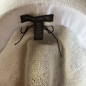 This Vince Camuto hat features a classic wide-brimmed design, perfect for providing ample sun protection. Crafted in a clean, bright white, it offers a timeless and versatile accessory for any sunny day.