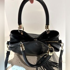 Vince Camuto Elva Black Leather Crossbody/Satchel Handbag with Tassel Charm