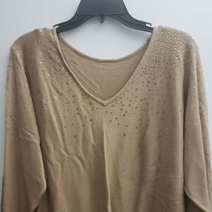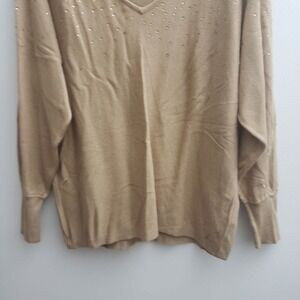 Vince Camuto Embellished Dolman-Sleeve Sweater Sz Medium Brown Sequins Vneck NWT