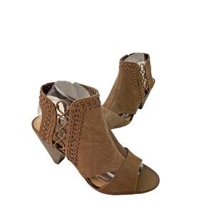 Vince Camuto Emma Peep Toe Caged Heels Womens Size US 8.5 EU 39 Tan Leather Zip