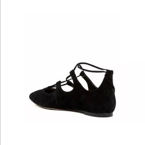Velvety suede extends from the pointy toe to the ghillie lacing of this warm-weather midi flat. Wrap the laces up your calf or keep them down by your ankle for two different styling options.
