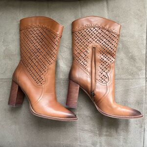 Vince Camuto Emmelia Warm Caramel Mid Calf Pointed Toe Western Heeled Boot