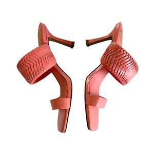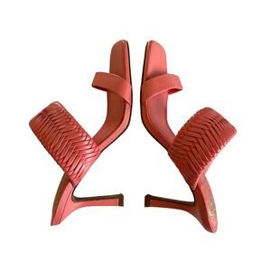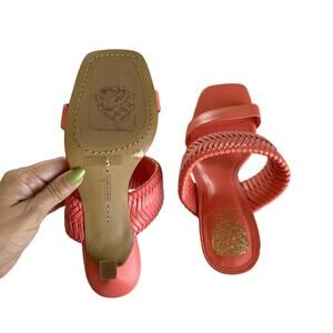 Vince Camuto Emoelee Ultra Coral Woven Strap Tapered Heel Sandals Size 7.5