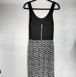 Black & white sheer pattern, zipper back, 18" side slits, partially lined
