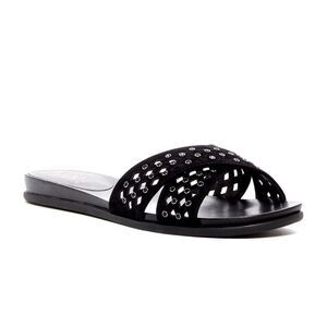 Vince Camuto Endana black studded cut out slide sandals women’s shoe size 8