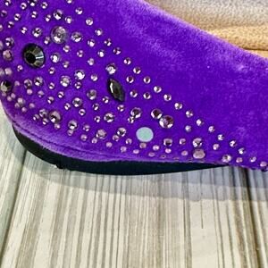 Good pre-owned condition with flaws there are a couple rhinestones missing. The Right shoe Tag size spot where insole was damaged in removal.