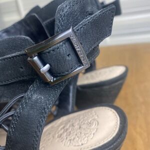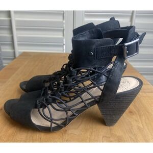 Vince Camuto Evel Black Leather Elastic Strappy Stacked Heel Gladiator Sandals 8