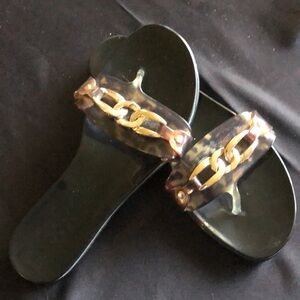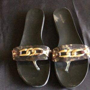 Vince Camuto Evolet Jelly Thong Flip Flops Tortoise Gold Accents