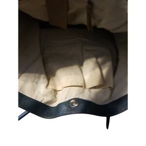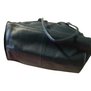 The Vince Camuto Evona Tote Jade Bag is a stylish and practical handbag perfect for travel and casual occasions. This large rectangular tote features a magnetic closure and double green leather handles, making it easy to carry. The interior is lined with cotton fabric in a beige color, interior large zippered pocket as well as two smaller pockets. The exterior is crafted from a pebble leather in a solid Jade green shade. With a designer theme and classic style, this tote is a versatile and fashionable accessory for any woman's wardrobe.