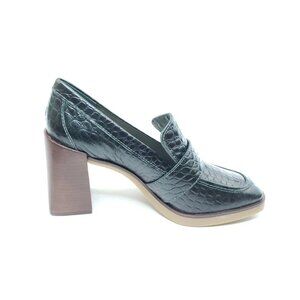 Vince Camuto Ezerna Croc Leather Loafer Heels Womens Green Block Heel 7.5M EU 38