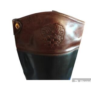 • Style Profile: Classic, preppy riding boot, brown and black leather outer.