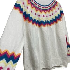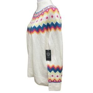 Vince Camuto Fair Isle Knit Sweater Cream Multicolor Chevron NWT Size M