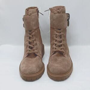 Vince Camuto Fawdry Combat Boots Women's 10M Tan Suede Moto Riding Bikercore Grunge Ankle Boots.