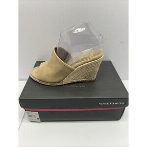 Vince Camuto Fayla Tan Suede Rope Bottom Slip In Shoe Wedge Size 7