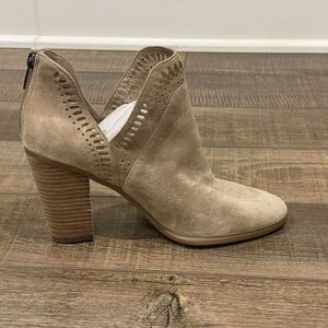 Vince Camuto Fileana French Taupe Suede Split Shaft Bootie Size 8.5 Womens EUC