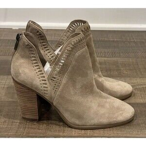 Vince Camuto Fileana French Taupe Suede Split Shaft Bootie Size 8.5 Womens