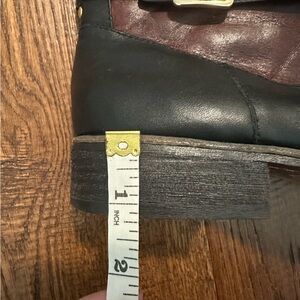 FEATURES: Beautiful Vince Camuto riding boots in black and cognac with zipper on side of ankle.