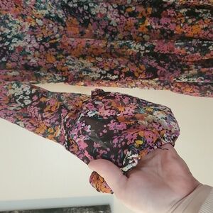 Vince Camuto Floral Babydoll Mini Dress Size Large Sheer Longsleeve Split V-Neck