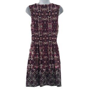 Vince Camuto Floral Dress Purple SZ 4 Pockets Pleat Sleeveless Fit Flare Career